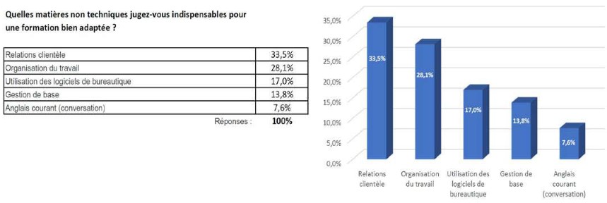 En ce qui concerne les matières non techniques, les relations avec la clientèle sont primordiales, pour plus d’un tiers des répondants.