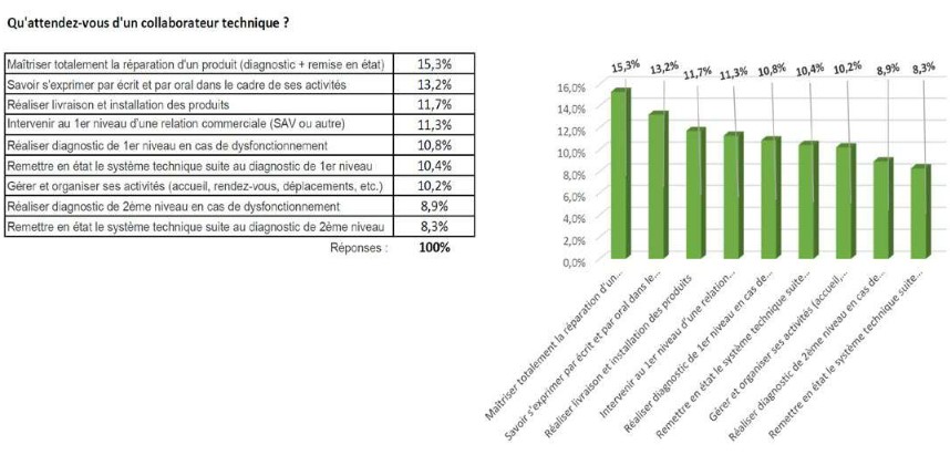 Par contre, la réparation au composant 1, économiquement intéressante pour le client et permettant de distinguer le professionnel confirmé, obtient un score nettement supérieur à celui attendu.